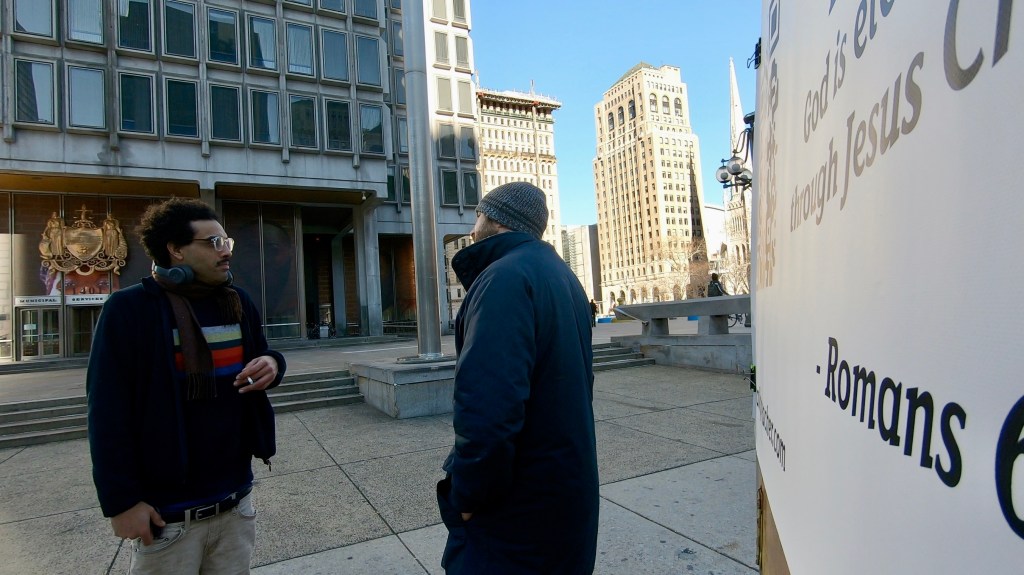While I was preaching, a young man approached me (pictured at top left). His name is Joshua. He was a very nice fellow, and was genuinely interested in what I had to say. I shared the gospel with him and answered many questions that he had. As I was speaking to him, a man named Ross approached us. He is a Ukrainian man who also spreads the gospel on the streets. He joined the chat as I spoke to Joshua. A few minutes later, an African woman, named Natasha, approached us. She also is a Christian. She really laid it on Joshua in the way only an African grandma can do. It was quite fun to watch. I believe Joshua was affected in a very positive way. He took a gospel of John and allowed us to pray with him. After he left, the three of his joined hands and prayed for the city. It was pretty cool. It’s amazing what can happen out on the streets. Sometimes it can be scary, but many times it is wonderful.
