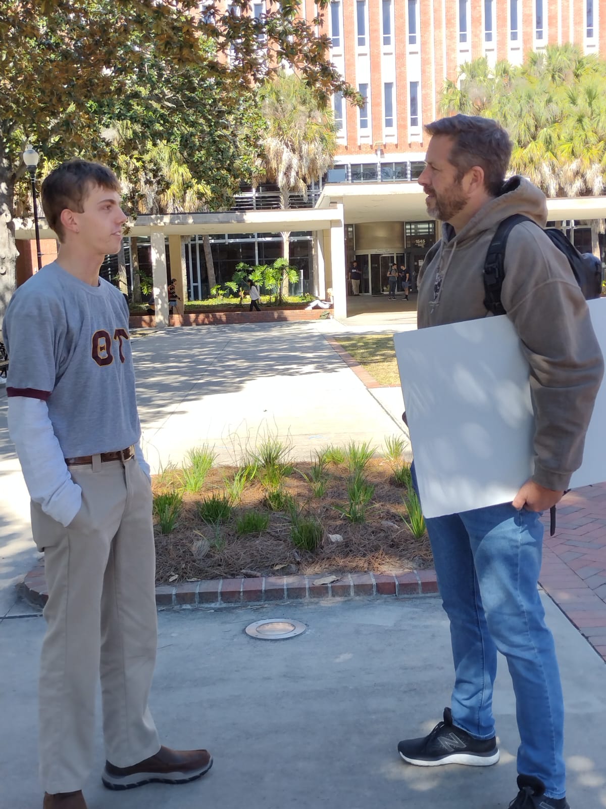 One student I spoke with was a young lady named Sophie from Austria. She told me that she didn’t believe in God, nor was raised in any religion. I told her about Jesus and the gospel, gave her some evidence for God, and gently answered her many questions. I sensed the Spirit working in her heart. There happened to be a group from a ministry on campus only a few yards from us. I called over one of the young ladies from the ministry and introduced her to Sophie. Amazingly enough, this ministry had a special outreach just for international students and was meeting this Friday. She invited her, got her number, and promised to follow up with her! She is at UF for one semester. Perhaps the Lord brought her here just for this!